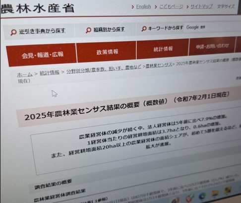 ところで、国の2025年農林業センサスの結果が公表されている。→https://www.maff.go.jp/j/tokei/kekka_gaiyou/noucen/040909/index.html