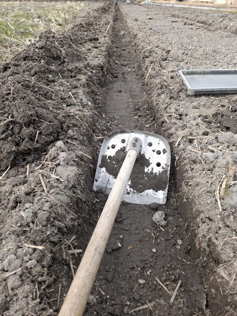 長辺20㍍弱の細長い溝が出来上がった。けっこうきれいに出来たような気がした。しょういち先生は「うまくできた」と褒めてくれた。この先生は温厚で、人を褒めながら気分よく働かせてくれる。